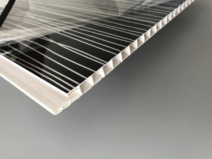 Panel PVC Dekoratif 7.5mm Ketebalan Dengan Garis-Garis Perak pada Hitam