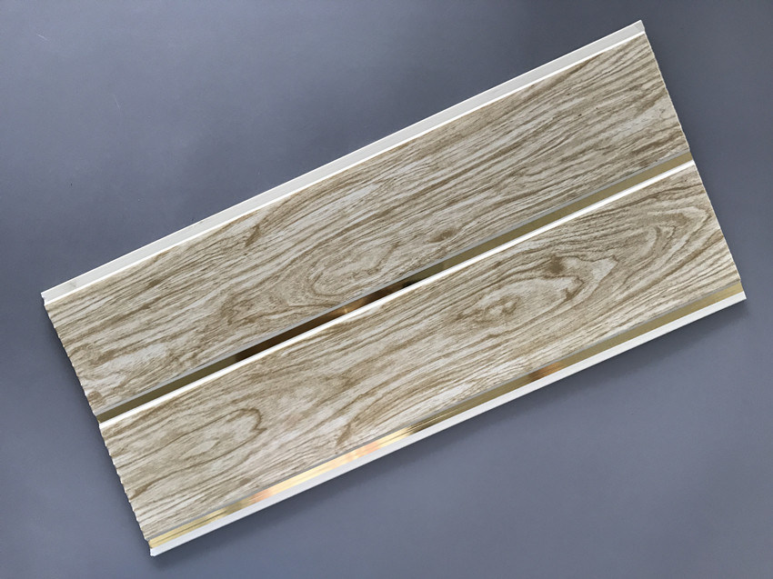 10 Inch Printing PVC Wood Panels Alur Pola Garis Emas Untuk Langit-Langit